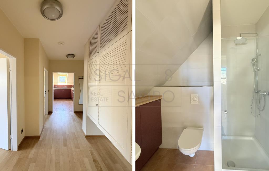 Über eine Wendeltreppe gelangen Sie in die Galerie im Dachgeschoss mit eigenem Duschbad und separatem Zugang – ideal als Arbeits-, Gäste- oder Rückzugsbereich.