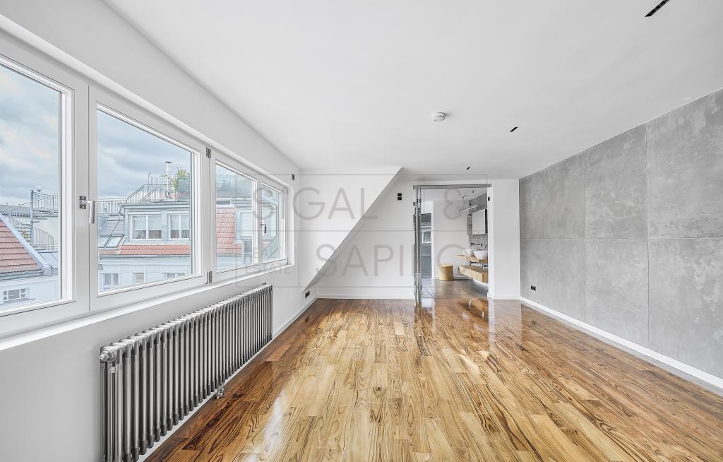 Im Herzen von Berlin-Charlottenburg präsentiert sich diese außergewöhnliche Dachgeschoss-Wohnung in einem stilvollen Jugendstil-Altbau. Der Dachausbau erfolgte 2005, eine umfassende Kernsanierung wurde 2017 durchgeführt – jetzt steht die Wohnung zum Erstbezug nach Sanierung bereit.