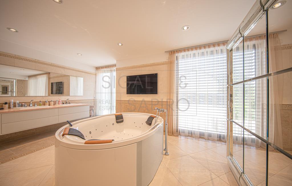 Ein schlüsselgeschützter Fahrstuhl mit direktem Wohnungsaustritt sorgt für höchste Sicherheit und Privatsphäre. In allen Schlaf- und Wohnzimmern sind Klimaanlagen installiert, die für ein angenehmes Raumklima sorgen, während Jacuzzis in mehreren Badezimmern zusätzlichen Luxus bieten. Die Fußbodenheizung sorgt für eine behagliche Atmosphäre in allen Räumen.